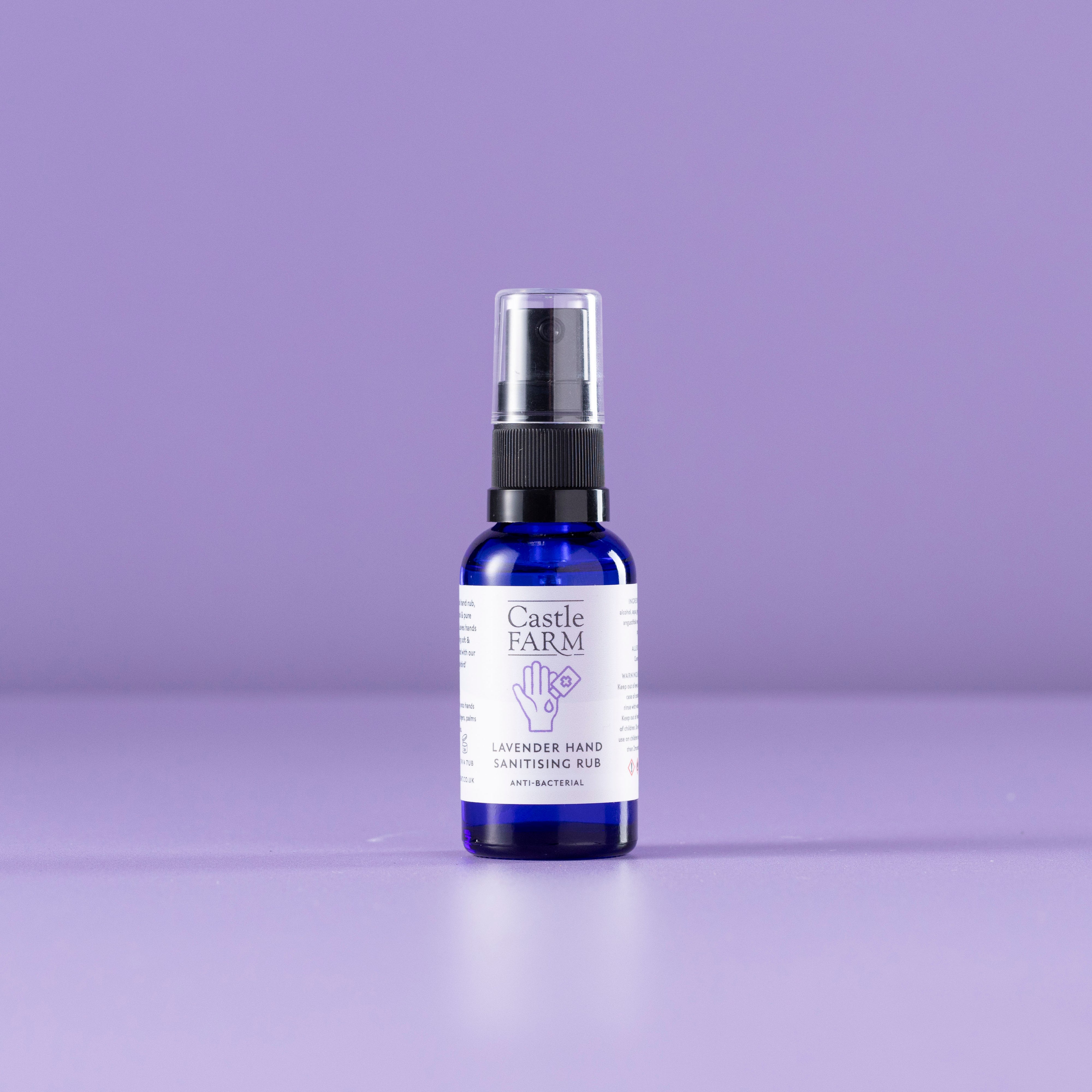 A moisturising, anti-bacterial hand rub, with 75% alcohol and pure Castle Farm Lavender Oil. Leaves hands germ free, feeling soft and delicately scented with our exceptional ‘Ladybird’ Lavender.